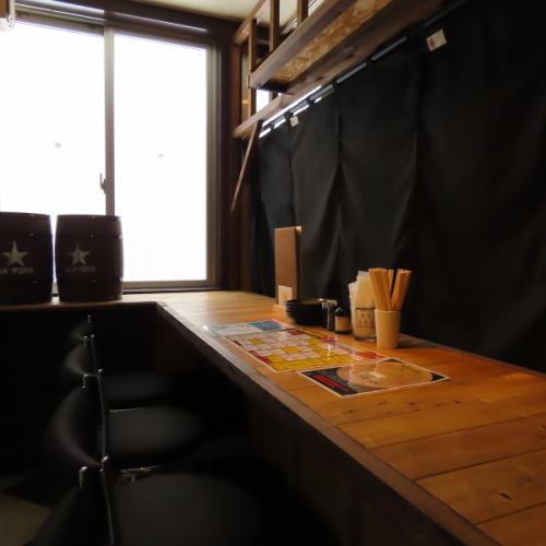 【1階喫煙席】 少人数でのご来店時はカウンターのお席もございます。お一人様もお気軽にお立ち寄りください。※分かりやすいように光量をあげております。